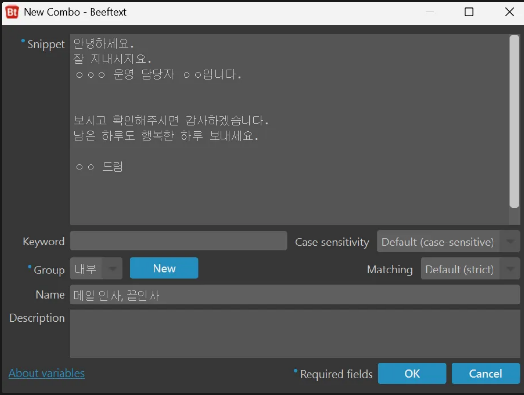 텍스트 자동완성 프로그램 Beeftext 활용 가이드