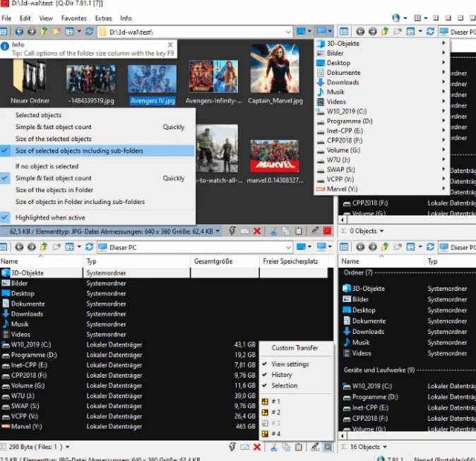 Q-Dir의 핵심 기능: 4분할 멀티 창