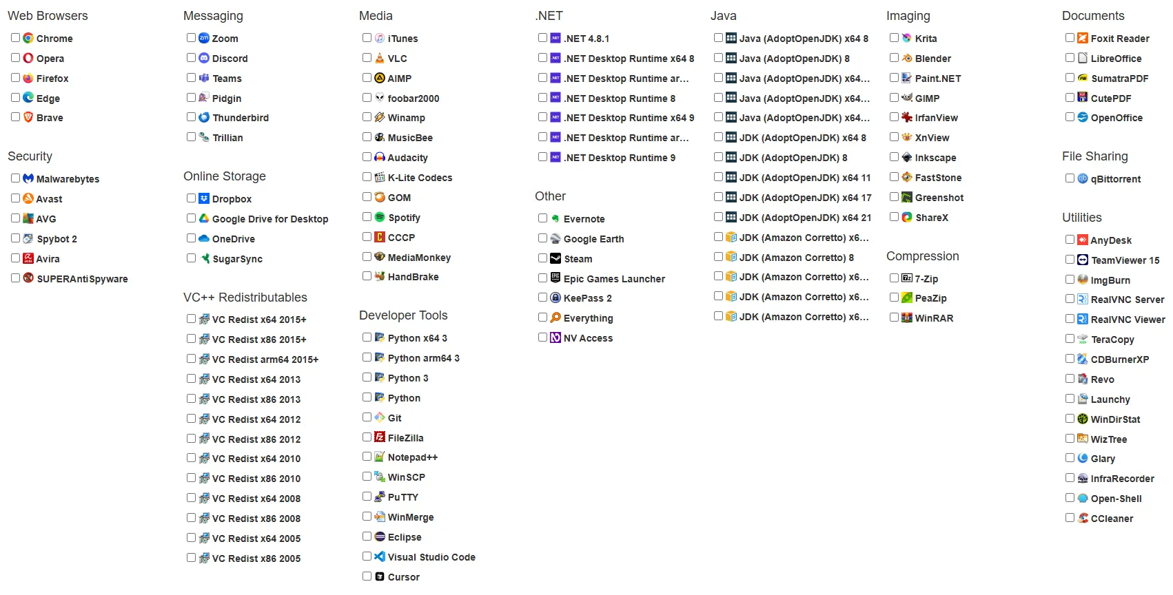 - 원하는 프로그램 체크 (브라우저, 메신저, 미디어 플레이어, 개발툴 등 수십 가지 지원)