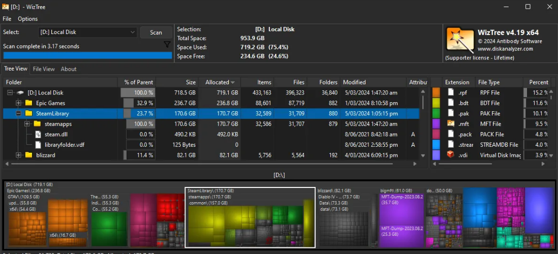 WizTree는 Windows 전용 디스크 공간 분석 도구다.